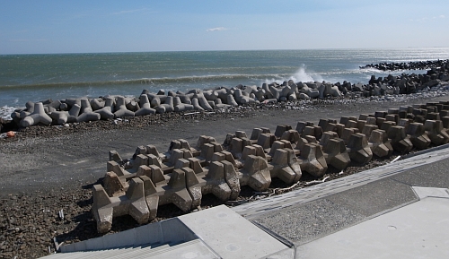 防波堤から見渡す。三年半前とほとんど変わらず。風が強い。飛ばされそうである。
